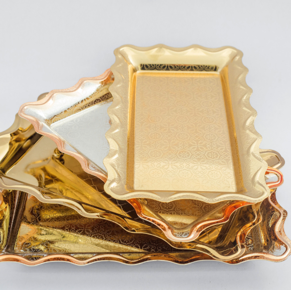 Arabesque luxury tray wedding decoration gold metal fruit service restaurant plates